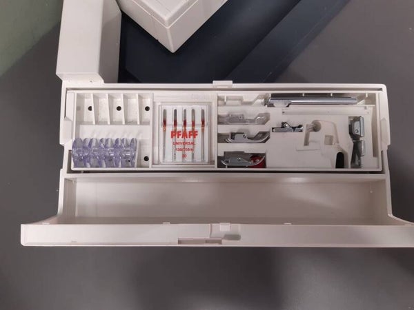 - Er zitten diverse voetjes en spoeltjes bij.