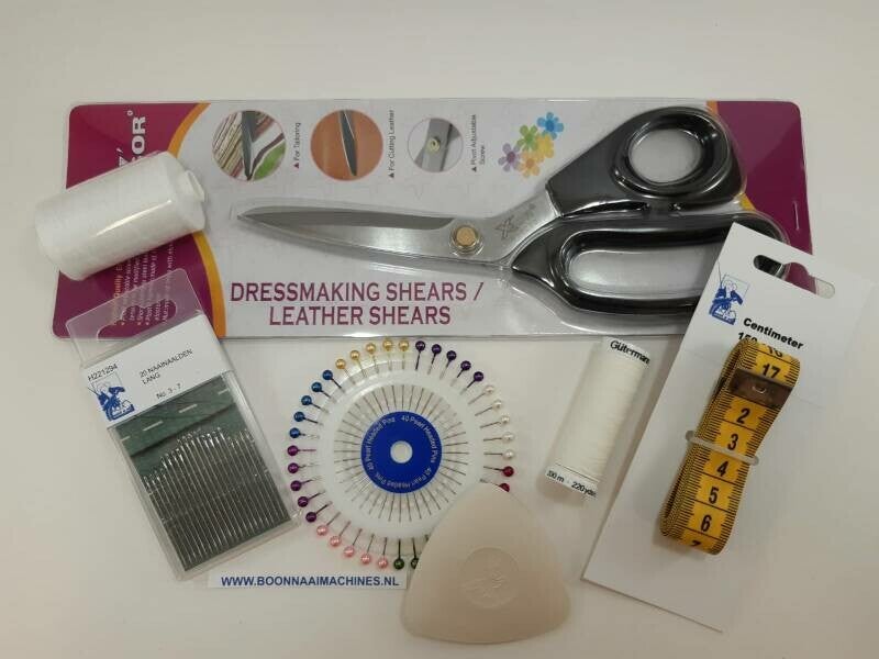 Tip: een stoffenschaar is persoonlijk en er zit verschil in scharen. In onze winkel mag je altijd alle scharen proberen. Kijk op onze pagina met scharen voor meer informatie. Je kunt de basisschaar uit het pakket vervangen voor een andere schaar (de kosten wordt dan verrekend).