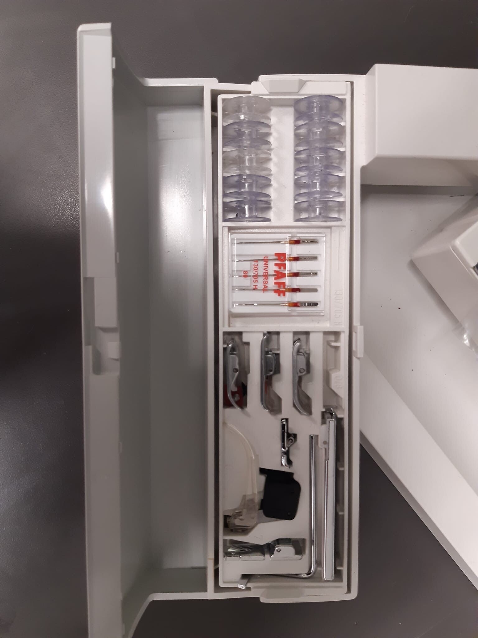 - Machine heeft diverse steken o.a: rechte steek, zigzag, stikkende zigzag, borduursteken